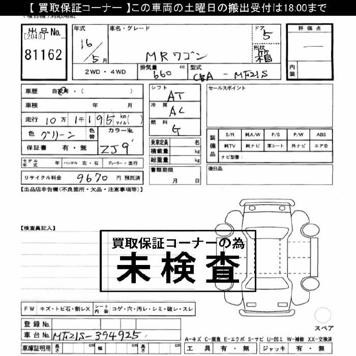 Все аукционы SUZUKI MRWAGON