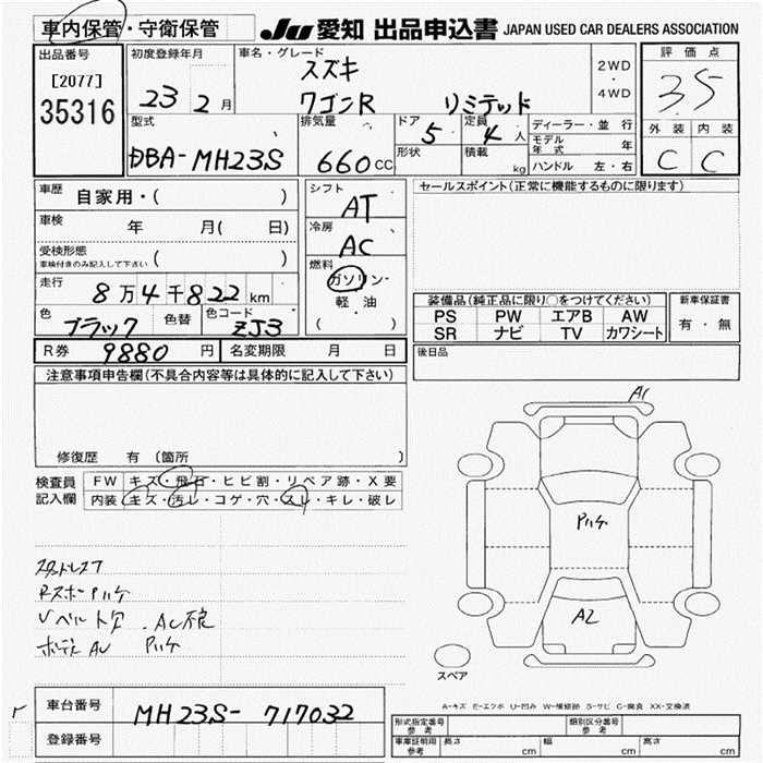- Кузов: DBA-MH23S