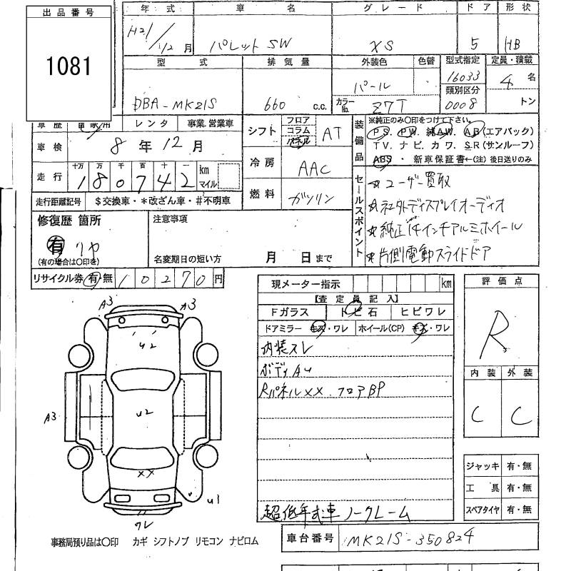Все аукционы SUZUKI PALETTE SW