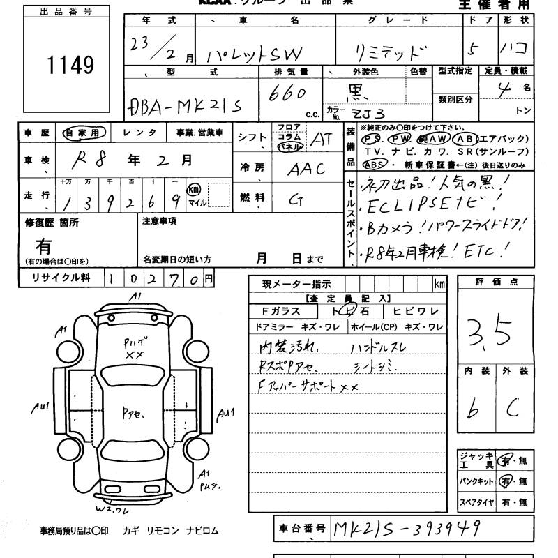 SUZUKI PALETTE SW - лот 1149