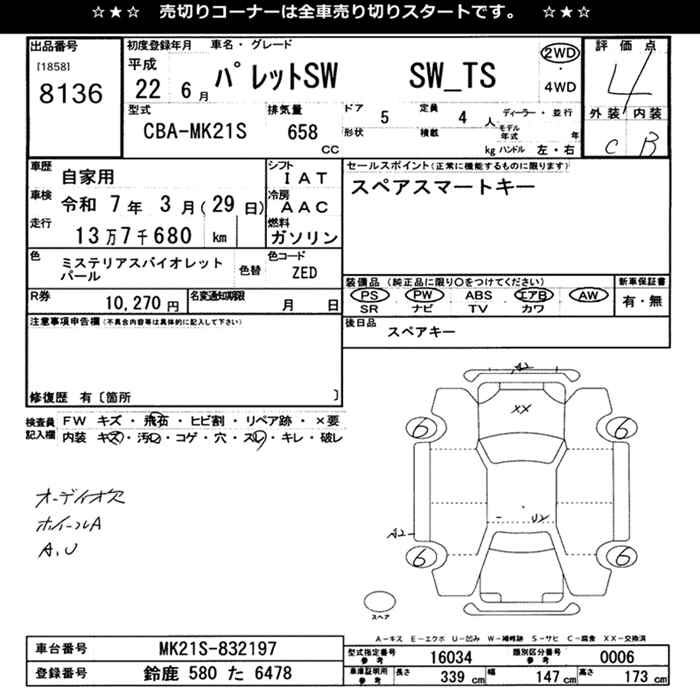 SUZUKI PALETTE SW TS - лот 8136