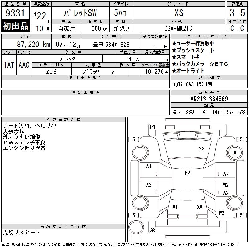 SUZUKI PALETTE SW XS - лот 9331