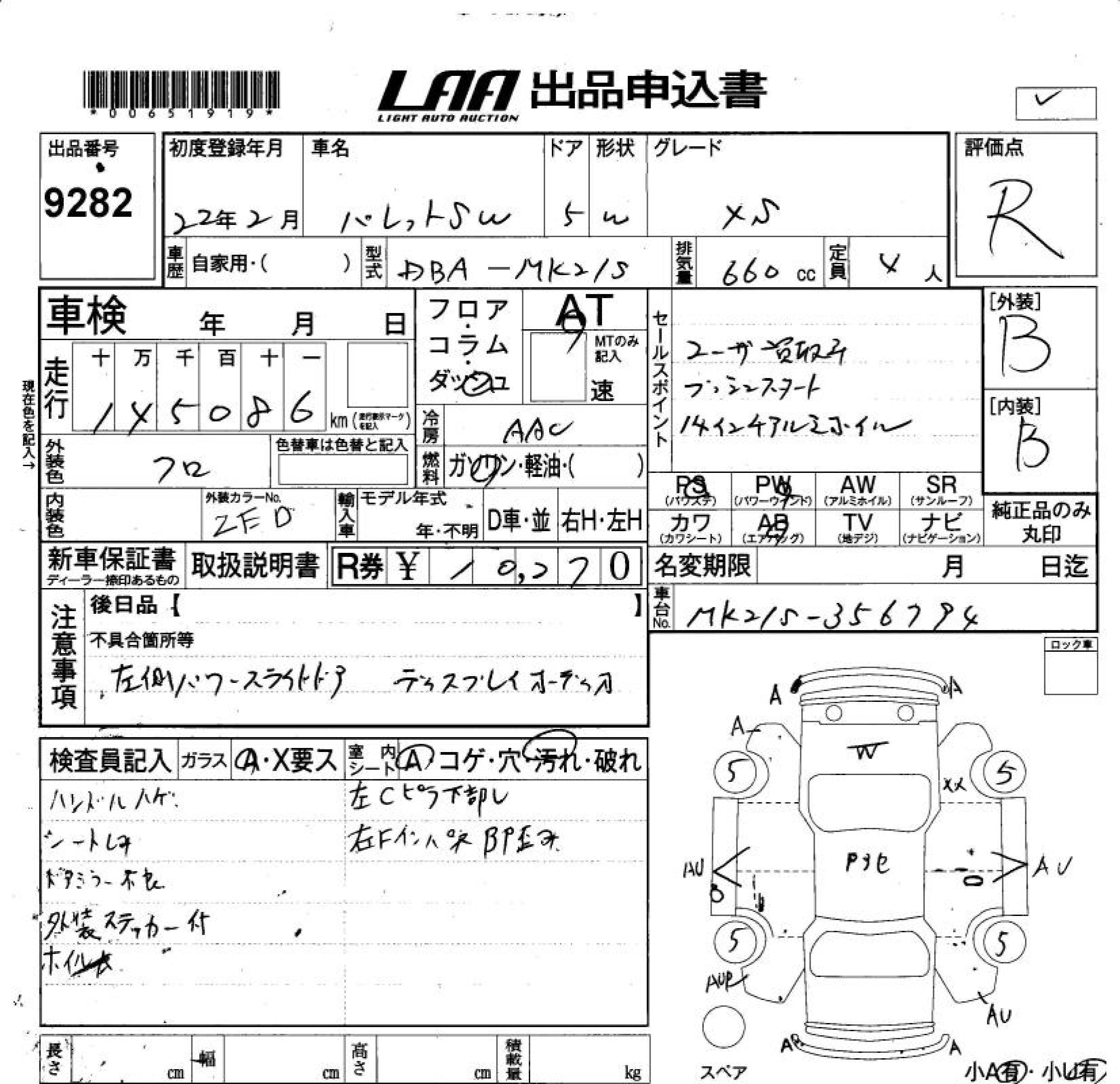 SUZUKI PALETTE SW XS - лот 9282