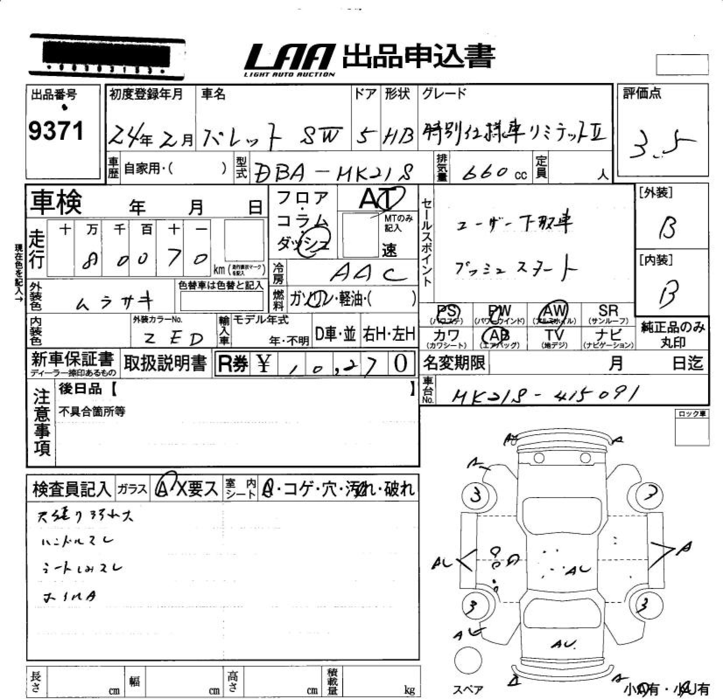 SUZUKI PALETTE SW LIMITED . SPECIAL EDITION - лот 9371