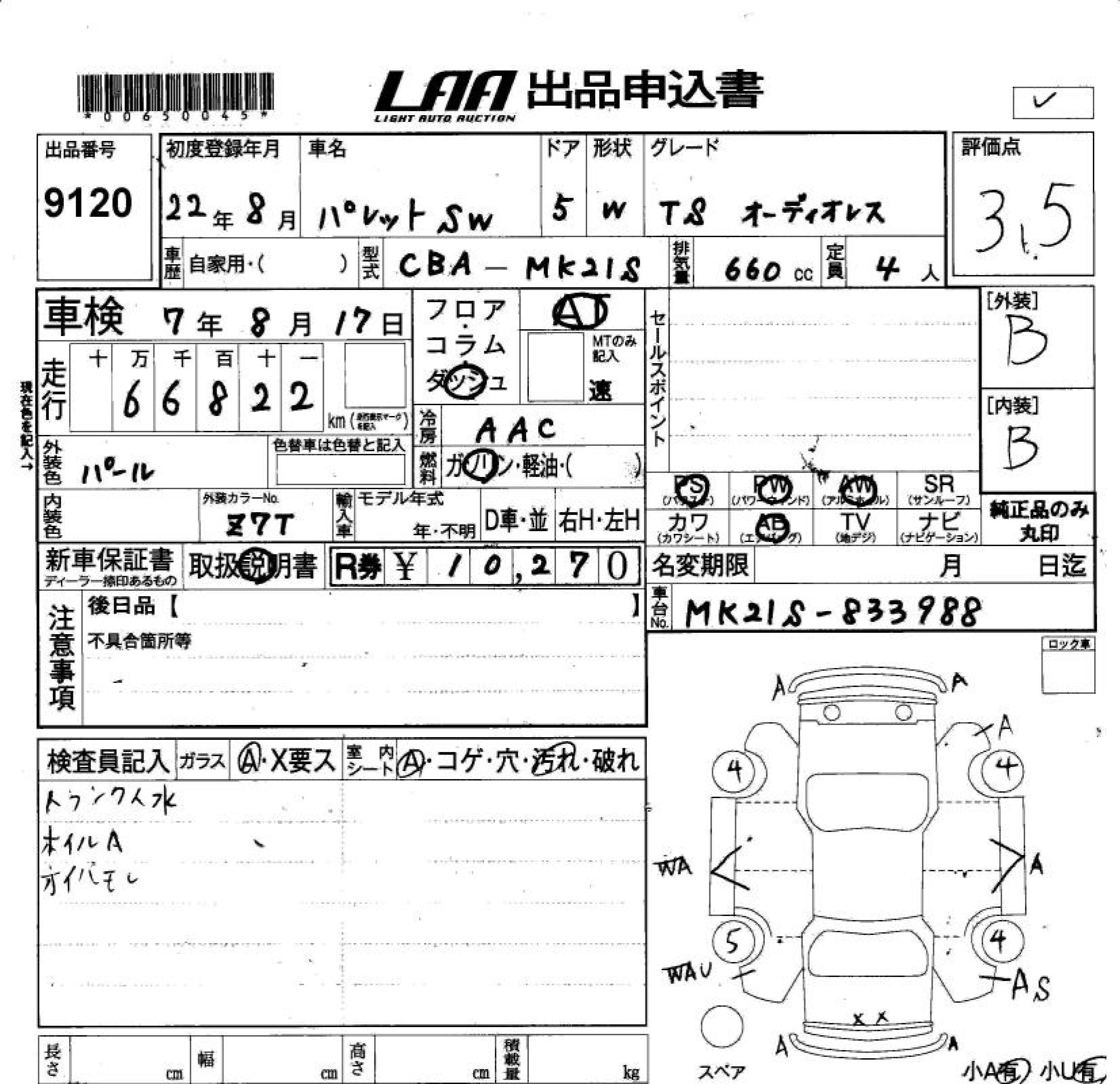 SUZUKI PALETTE SW TS WITHOUT AUDIO - лот 9120
