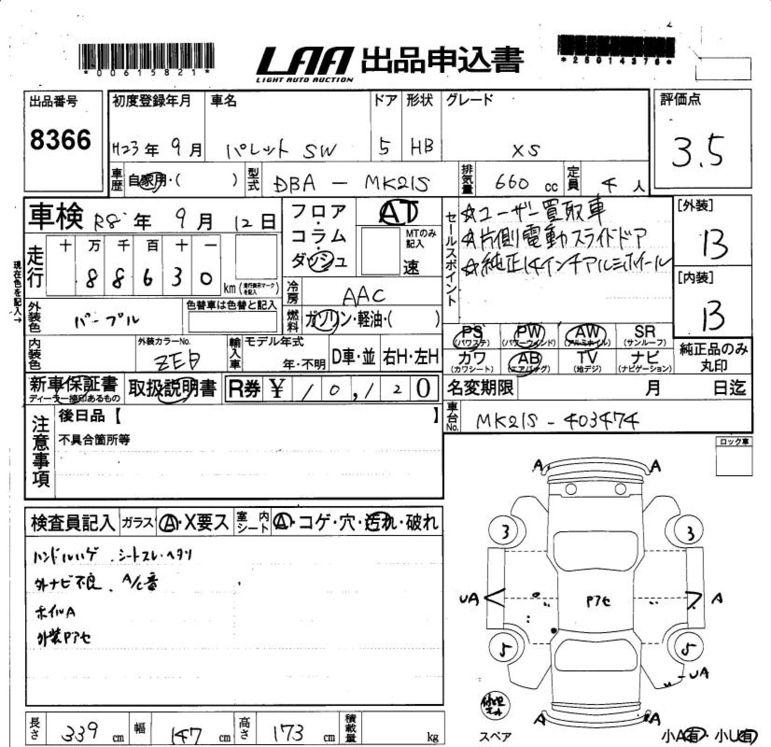 SUZUKI PALETTE SW XS - лот 8366