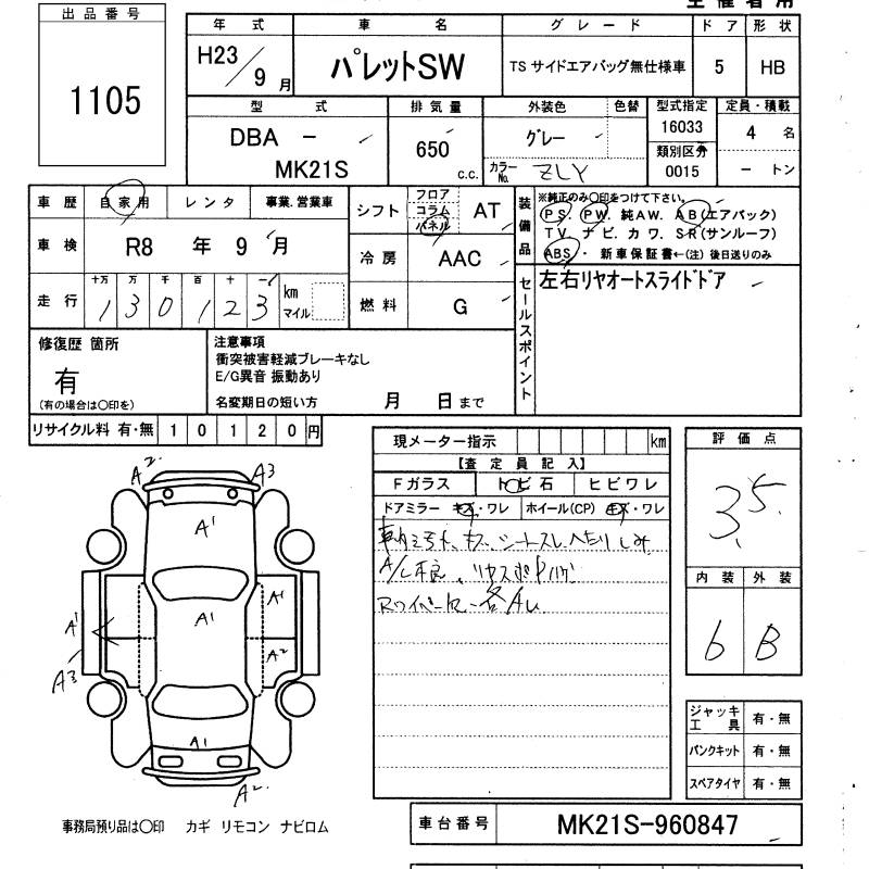SUZUKI PALETTE SW TS SIDE AIR BAG NOT EQUIPPED USE - лот 1105