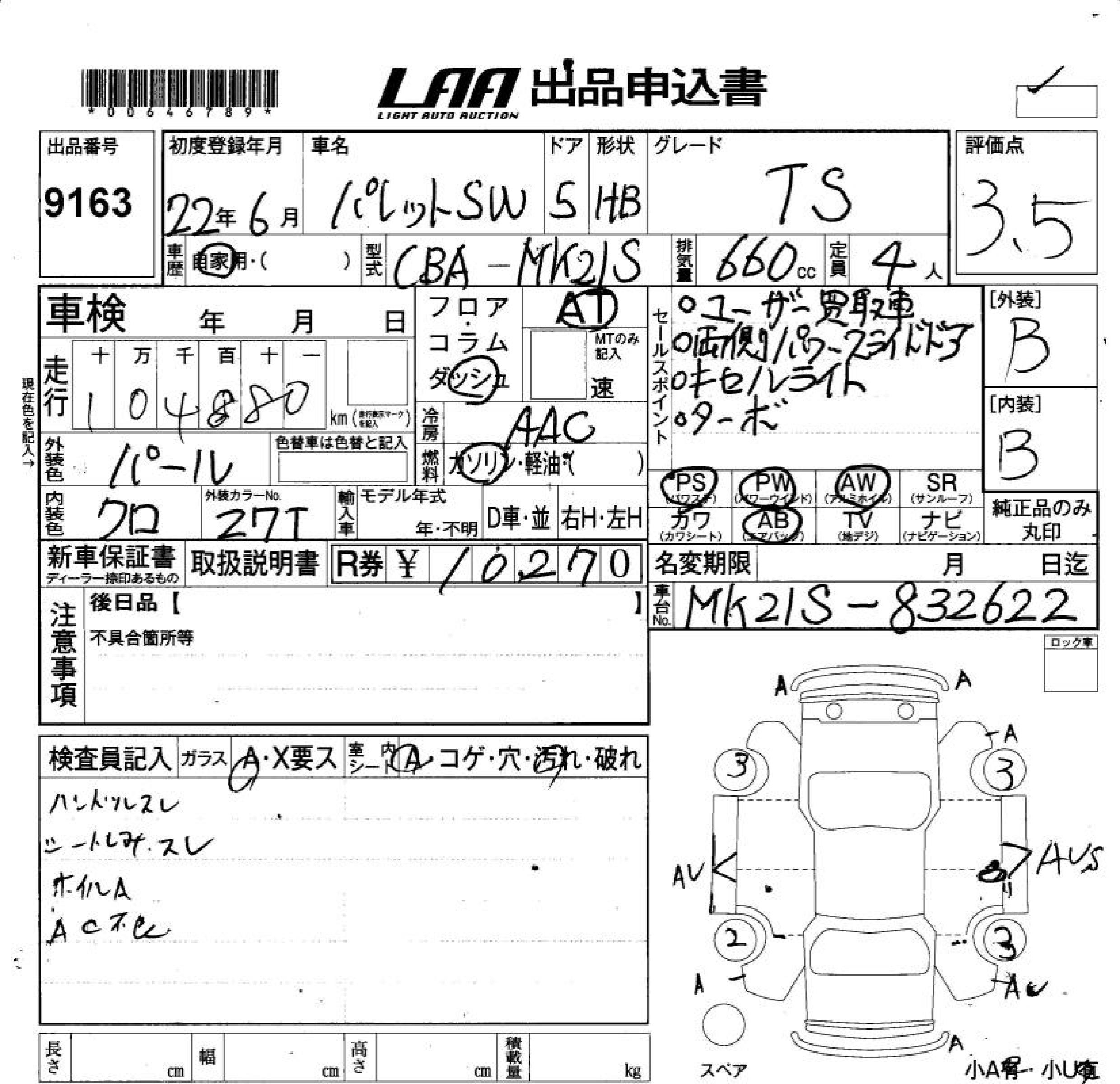 SUZUKI PALETTE SW TS - лот 9163