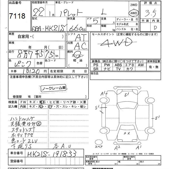 SUZUKI PALETTE 4WD L - лот 7118