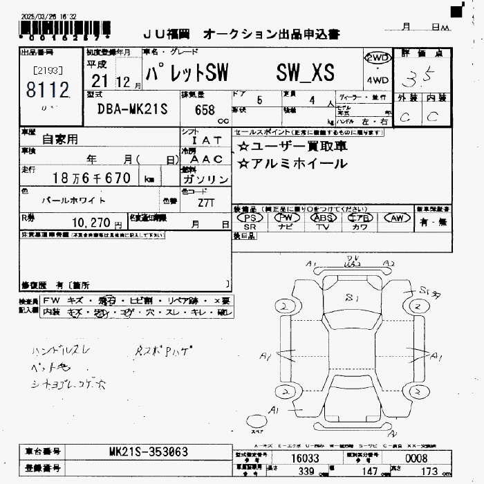 SUZUKI PALETTE SW XS - лот 8112