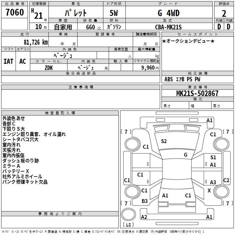 SUZUKI PALETTE G 4WD - лот 7060