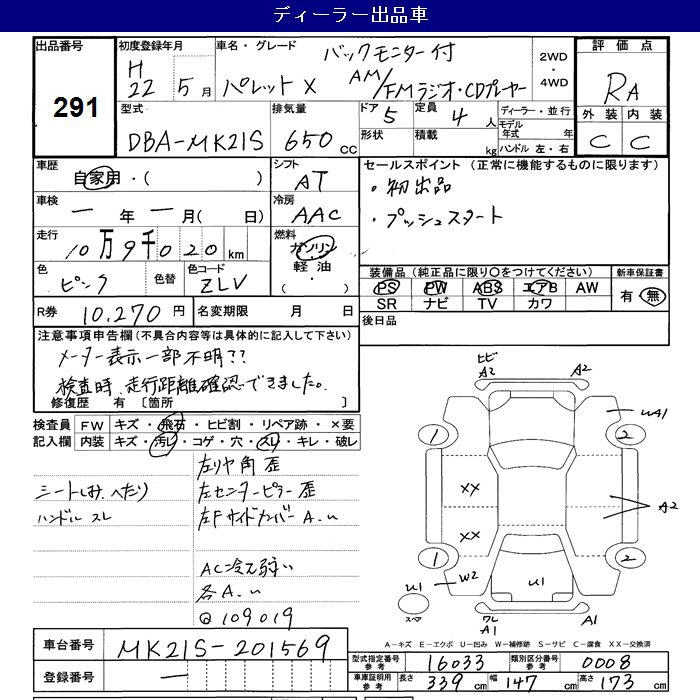 SUZUKI PALETTE X BACK MONITOR EXIST AM/FM RADIO CD PLAYER - лот 291