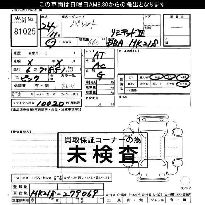 Все аукционы SUZUKI PALETTE