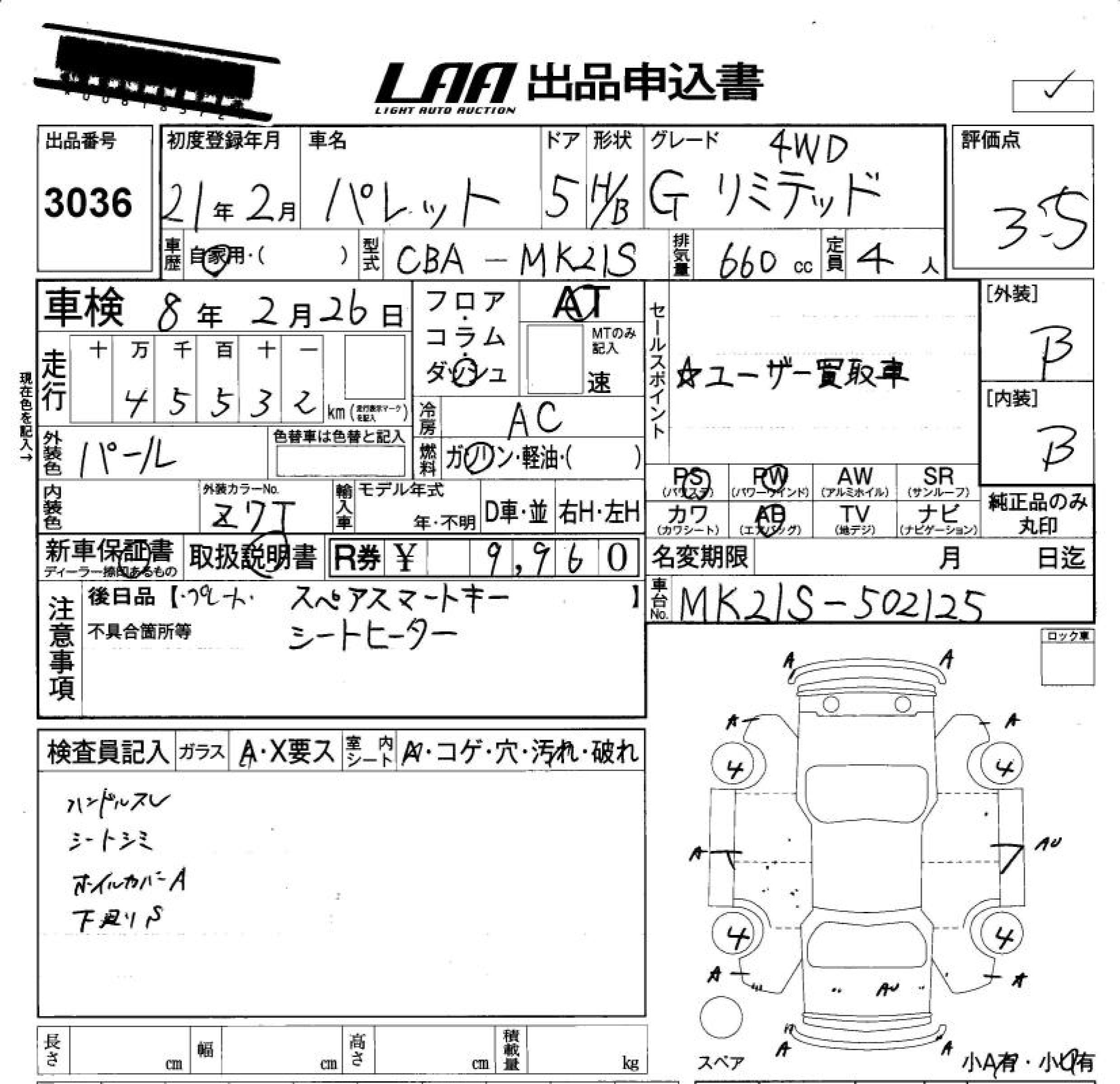 SUZUKI PALETTE G LIMITED 4WD - лот 3036