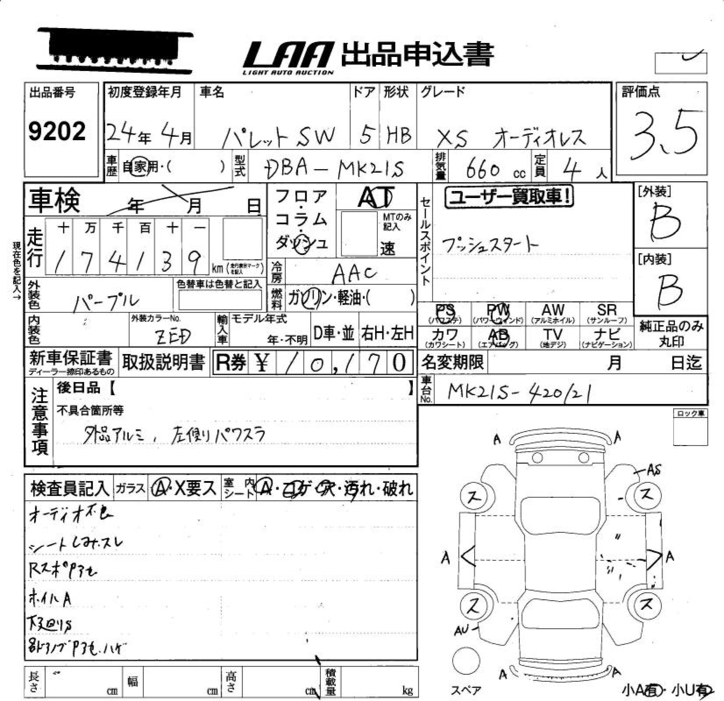 SUZUKI PALETTE XS WITHOUT AUDIO - лот 9202
