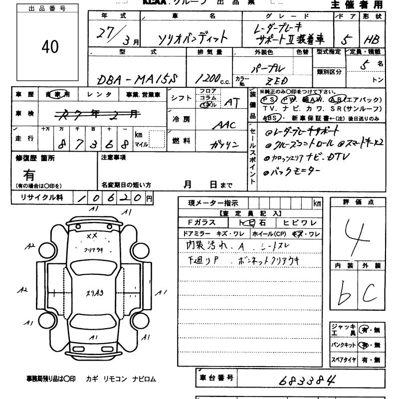 Все аукционы SUZUKI SOLIO BANDIT