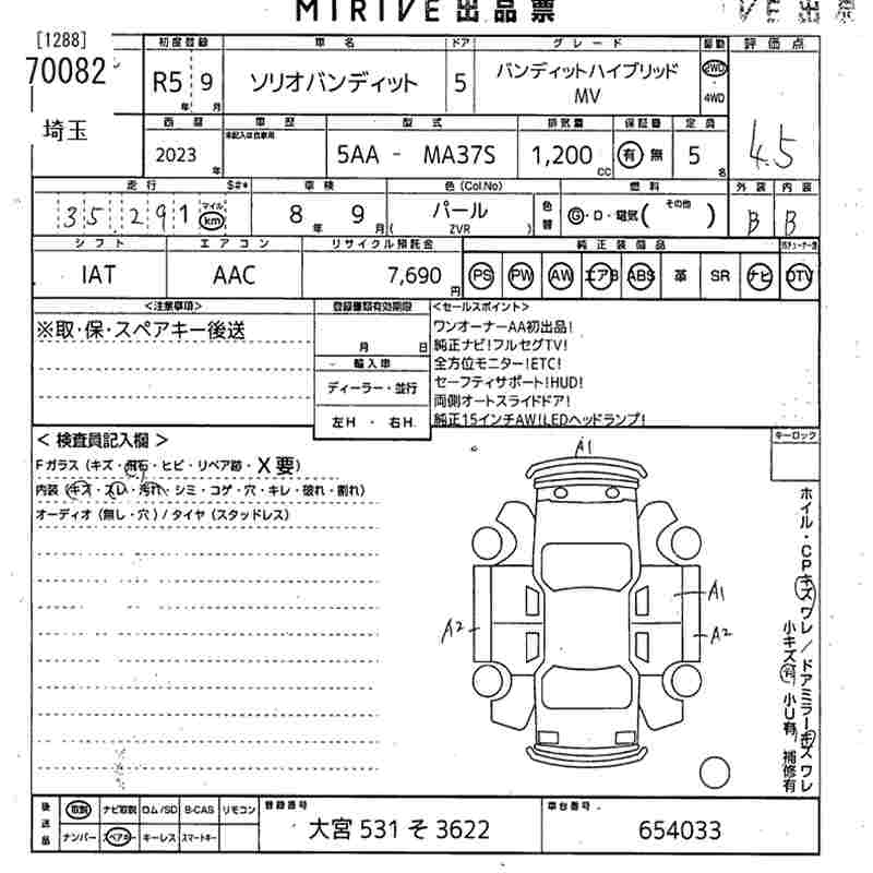 SUZUKI SOLIO BANDIT BANDIT HYBRID MV - лот 70082