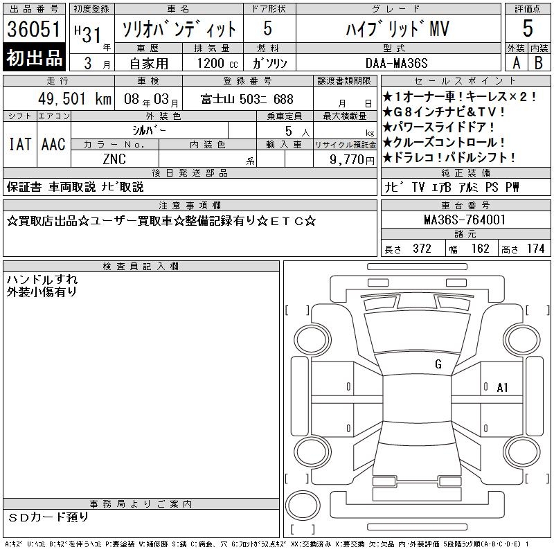 SUZUKI SOLIO BANDIT HYBRID MV - лот 36051