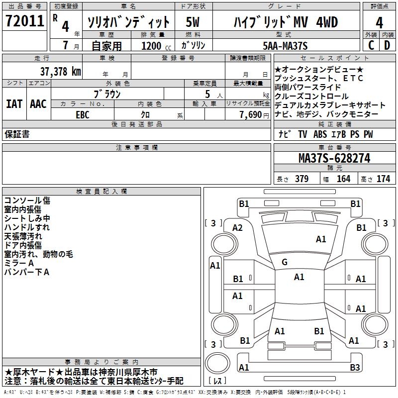 SUZUKI SOLIO BANDIT HYBRID MV 4WD - лот 72011