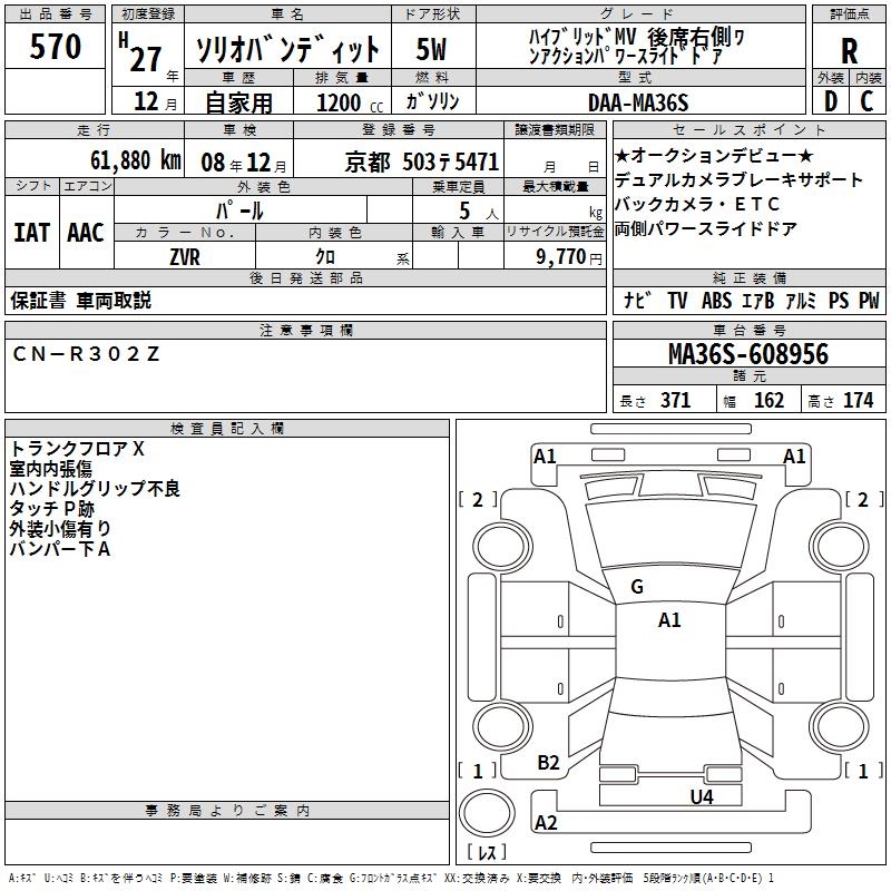 SUZUKI SOLIO BANDIT HYBRID MVKOU SEAT U RIGHT GA - лот 570