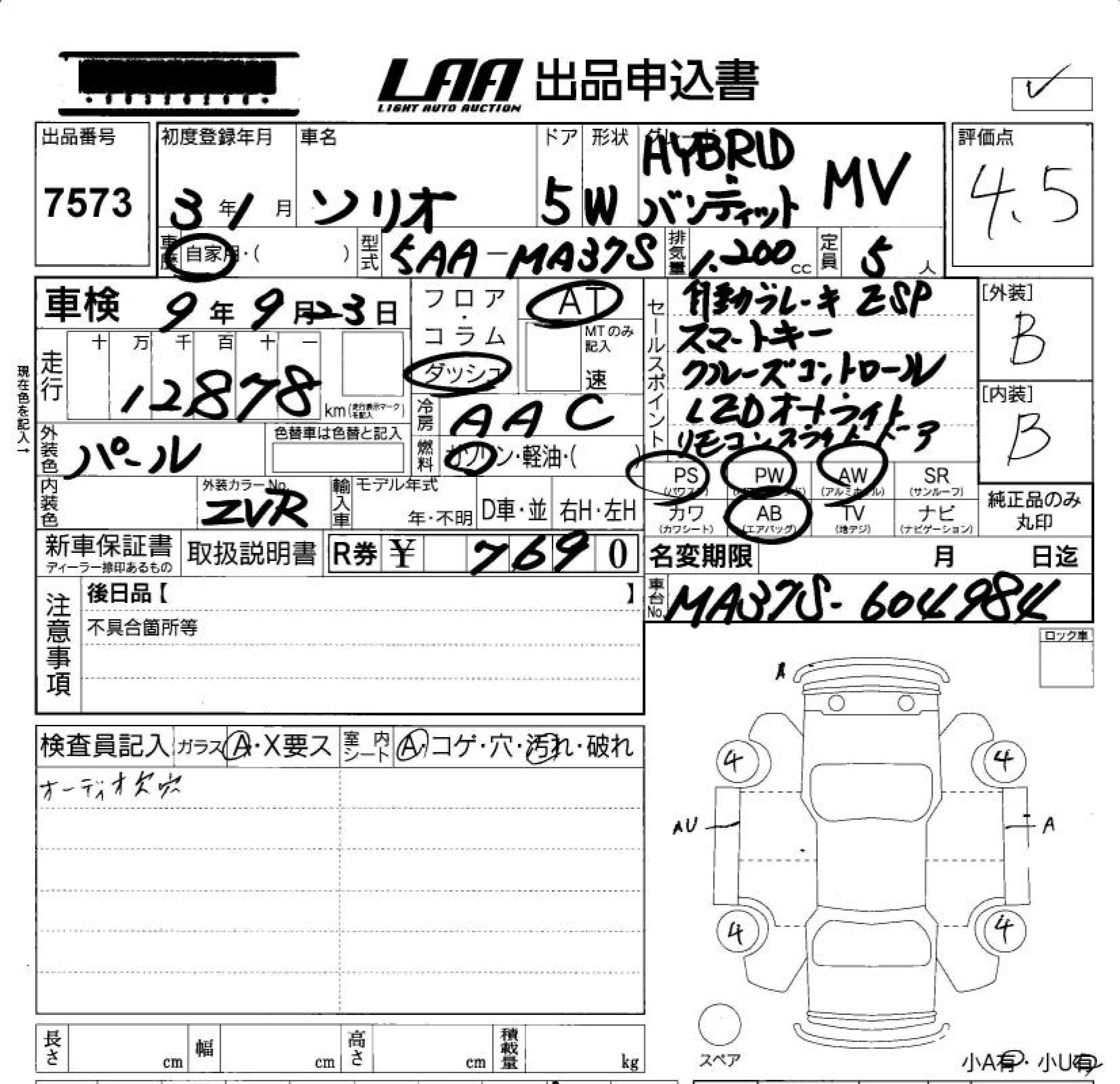 SUZUKI SOLIO BANDIT HYBRID MV - лот 7573
