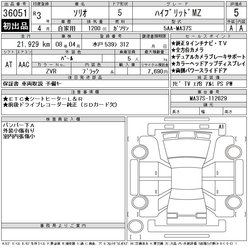 SUZUKI SOLIO HYBRID MZ - лот 36051