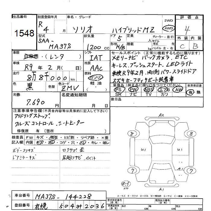 SUZUKI SOLIO 4WD HYBRID MZ - лот 1548