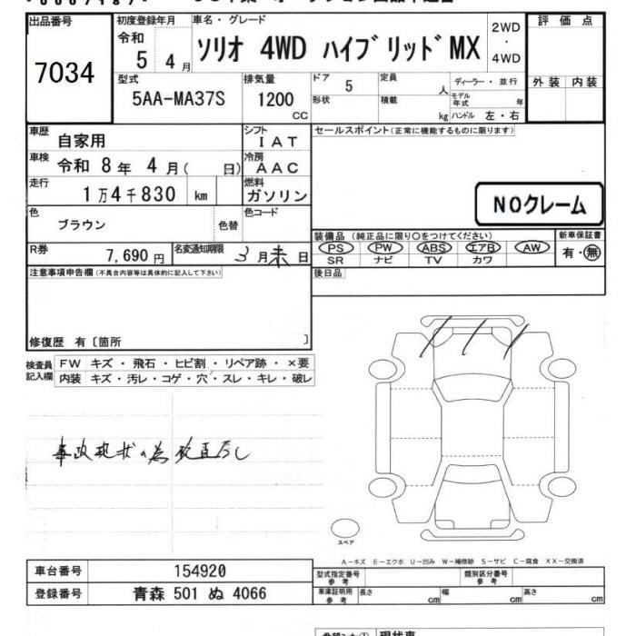 SUZUKI SOLIO 4WD HYBRID MX - лот 7034