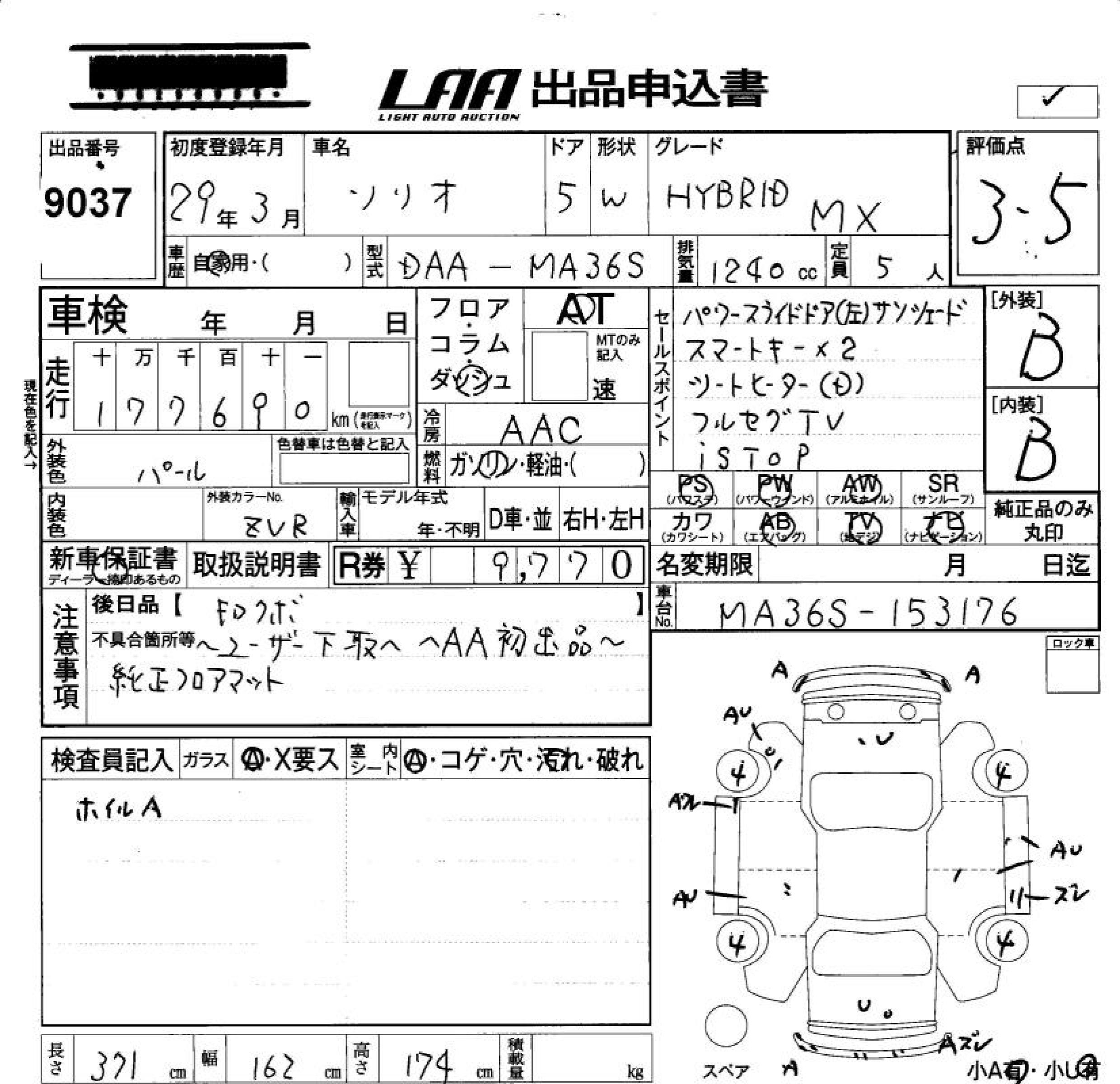 SUZUKI SOLIO HYBRID MX - лот 9037
