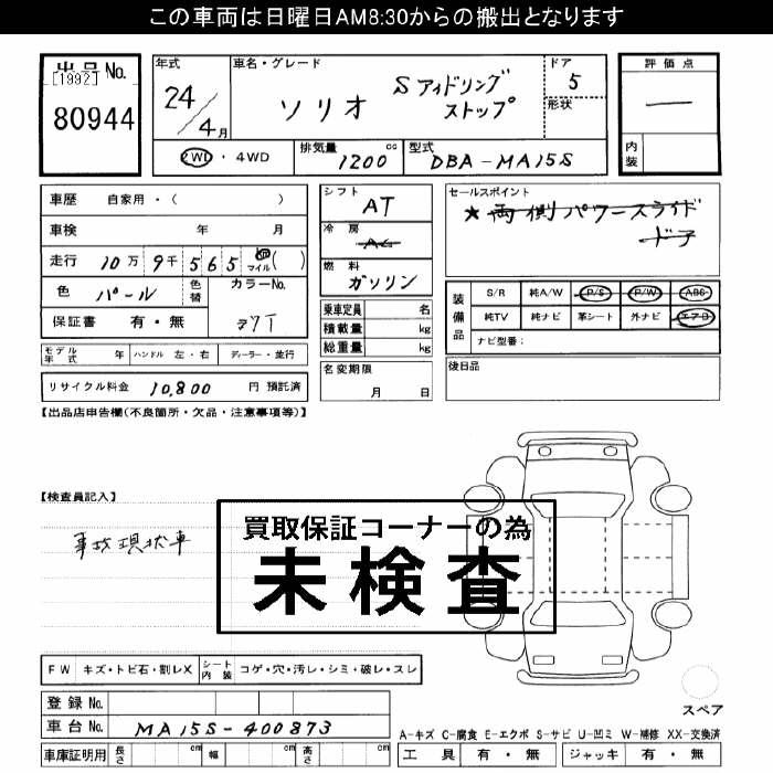 SUZUKI SOLIO S IDLING S TOP - лот 80944