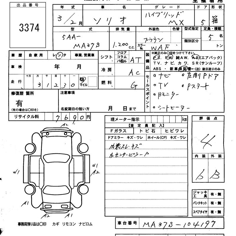 SUZUKI SOLIO HYBRID MX - лот 3374