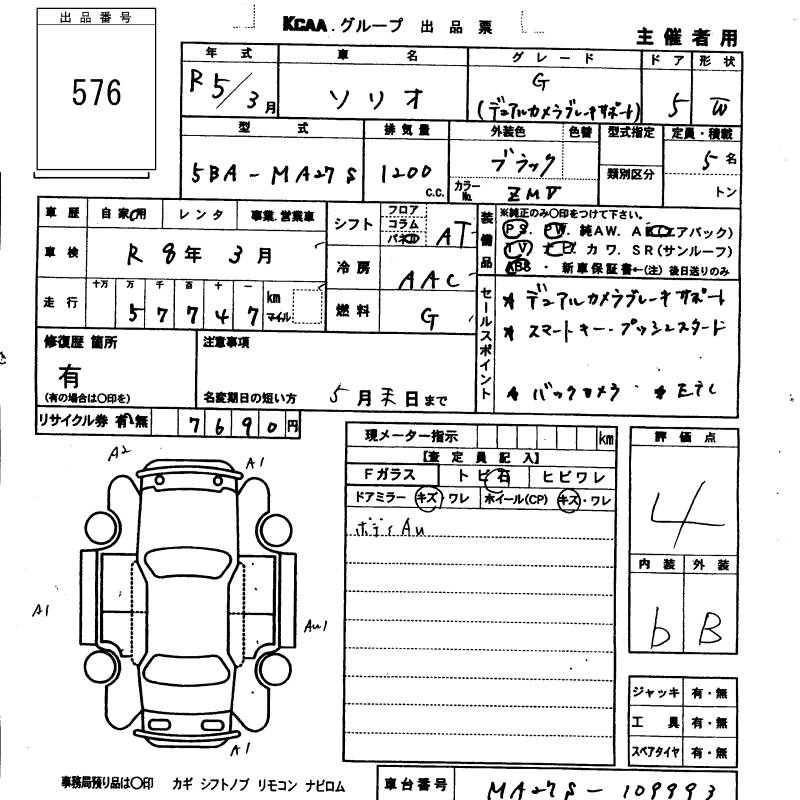 SUZUKI SOLIO G DUAL CAMERA BRAKE SUPPORT - лот 576