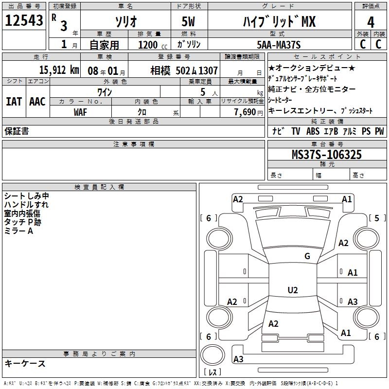 SUZUKI SOLIO HYBRID MX - лот 12543