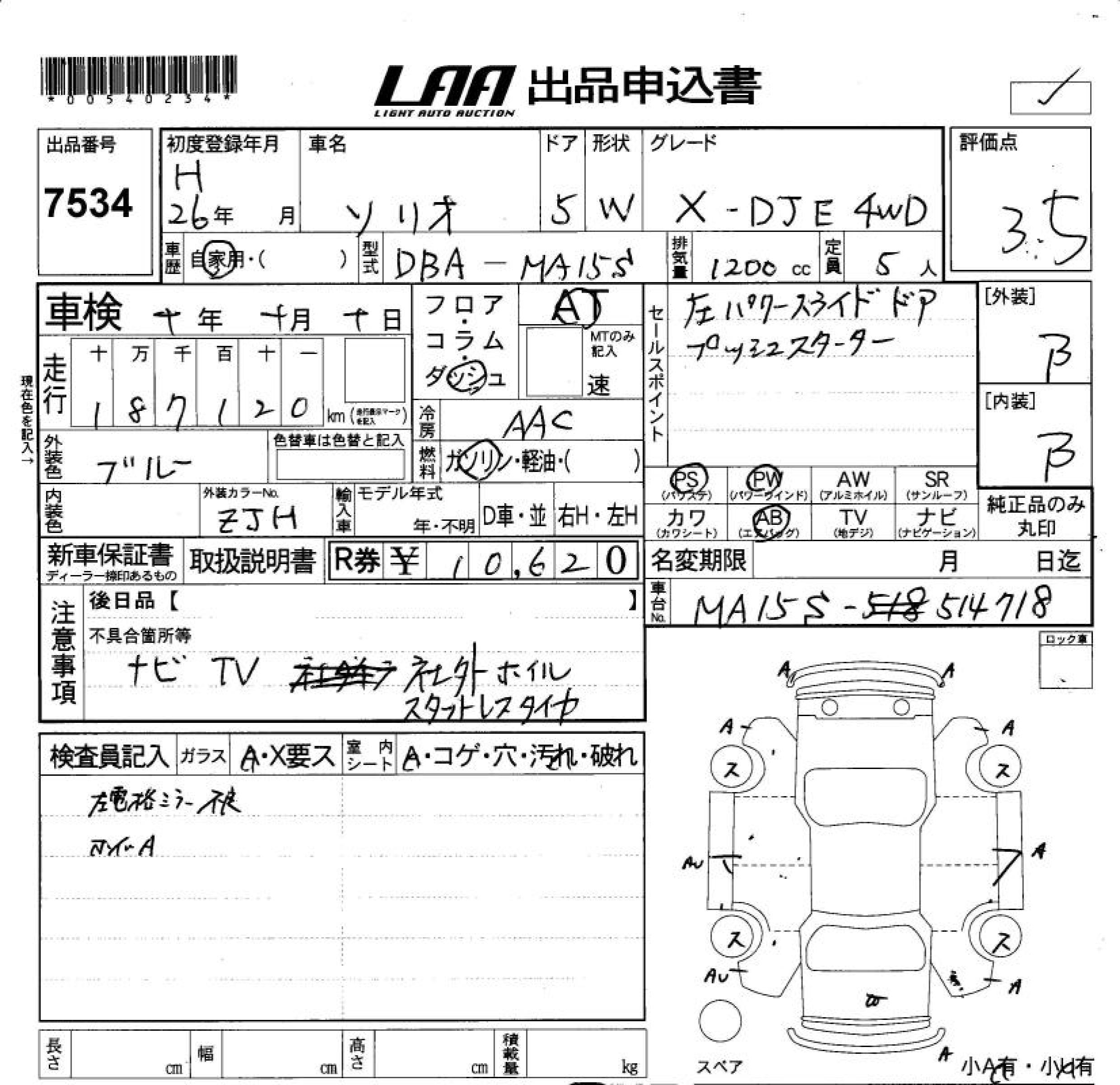 SUZUKI SOLIO X-DJE 4WD - лот 7534