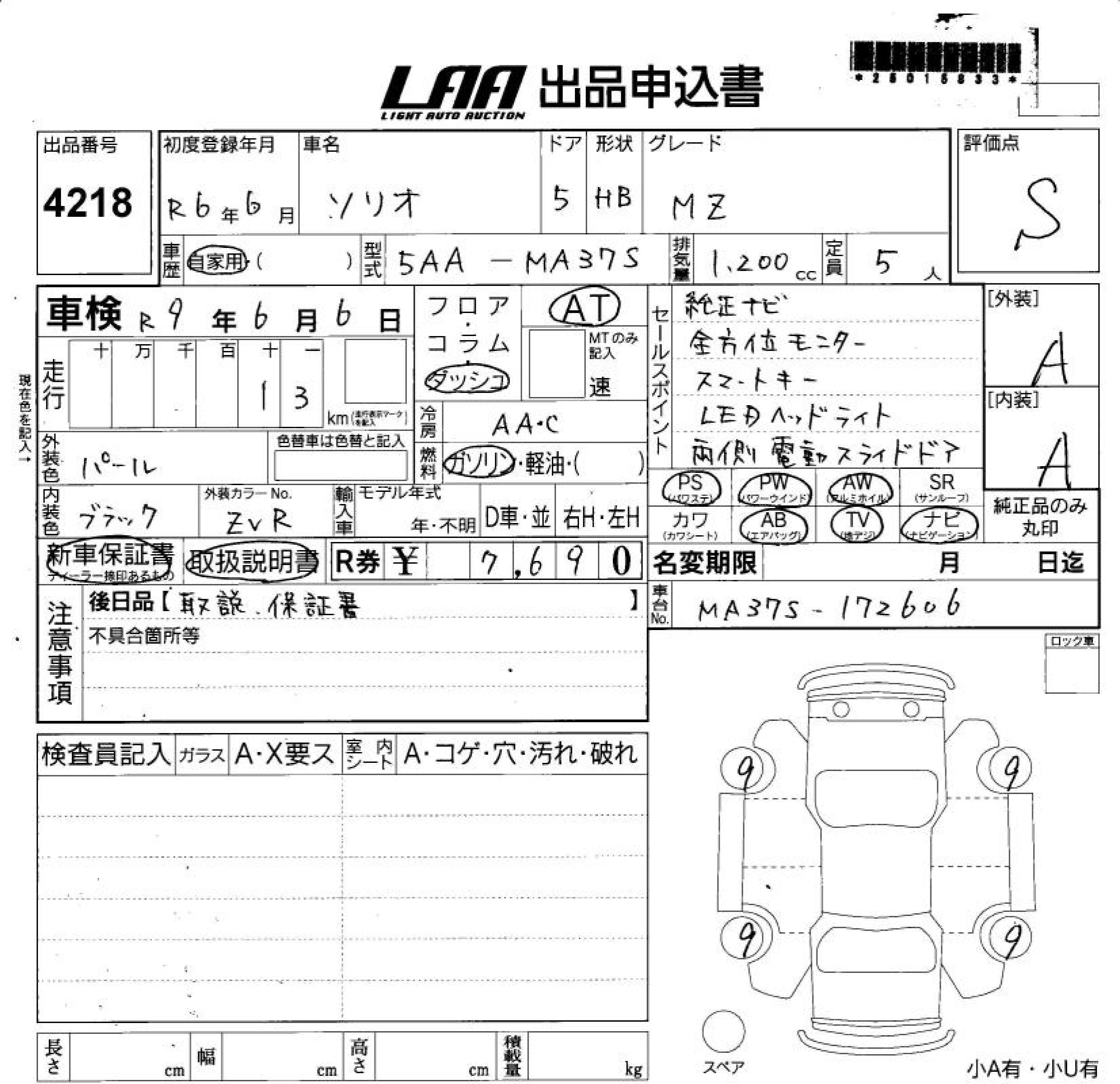 SUZUKI SOLIO MZ - лот 4218