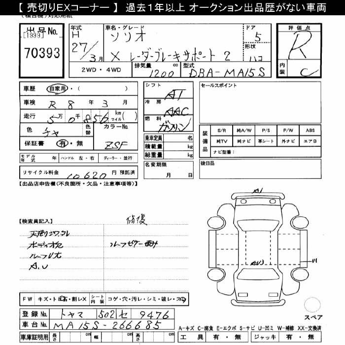 SUZUKI SOLIO X RADAR BRAKE SUPPORT 2 - лот 70393