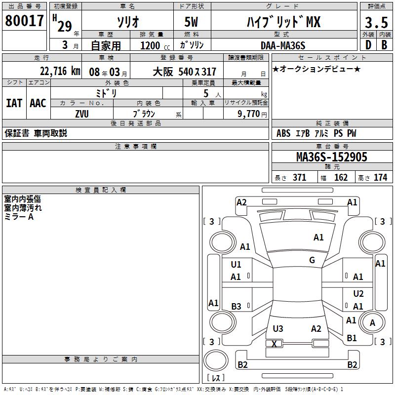 SUZUKI SOLIO HYBRID MX - лот 80017