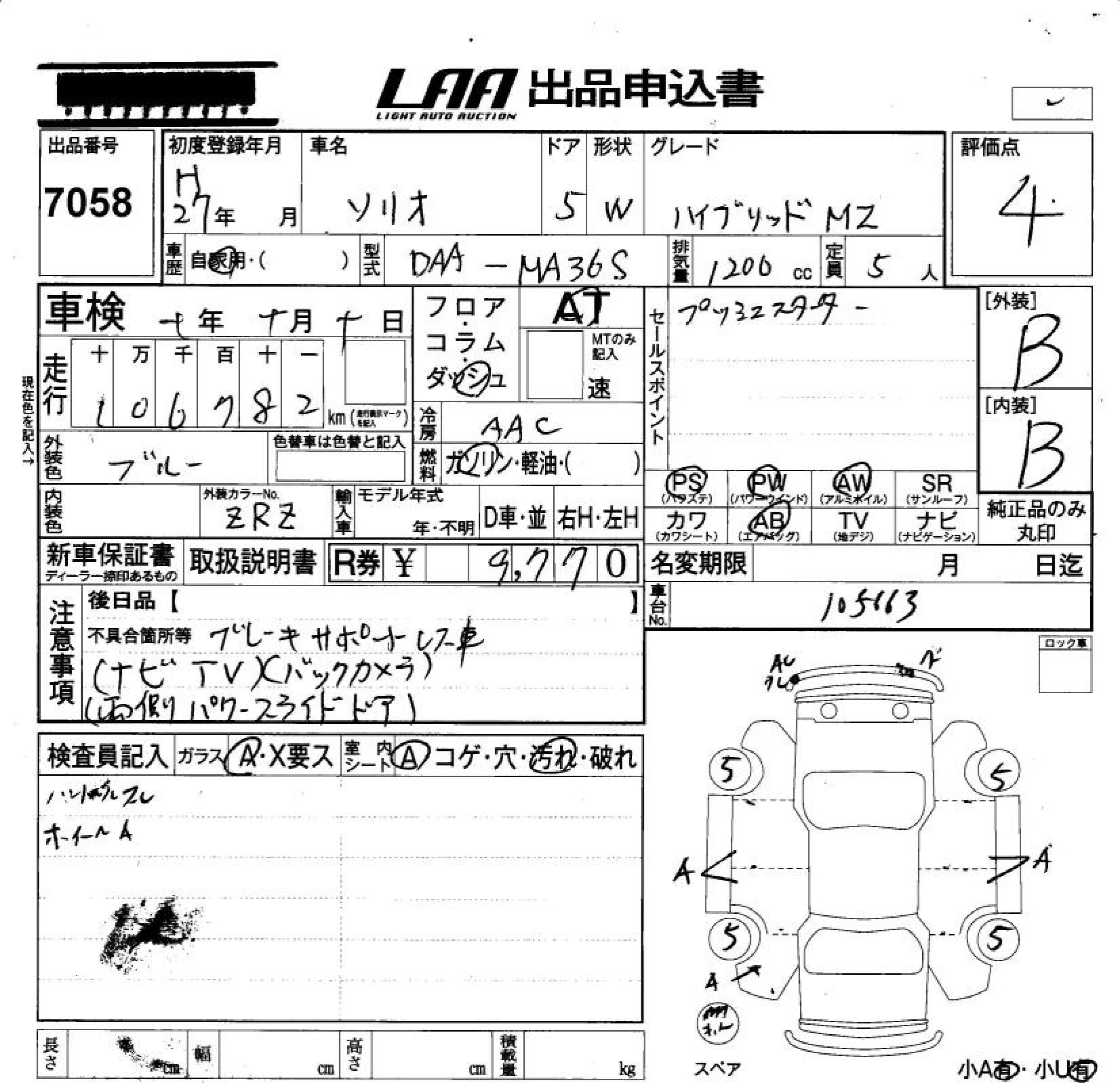 SUZUKI SOLIO HYBRID MZ - лот 7058