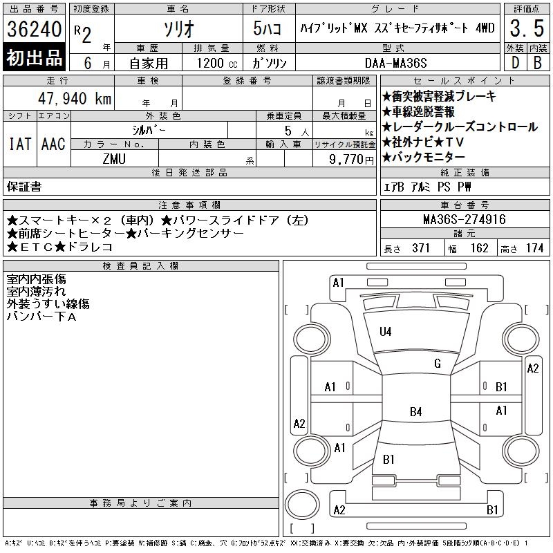 SUZUKI SOLIO HYBRID MX SUZUKI SE4WD - лот 36240