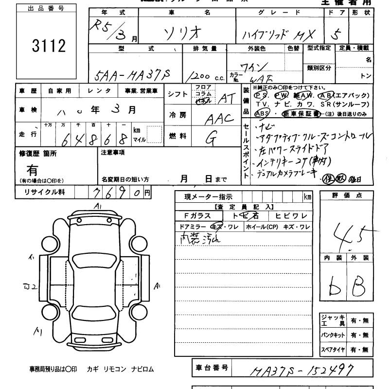 SUZUKI SOLIO HYBRID MX - лот 3112