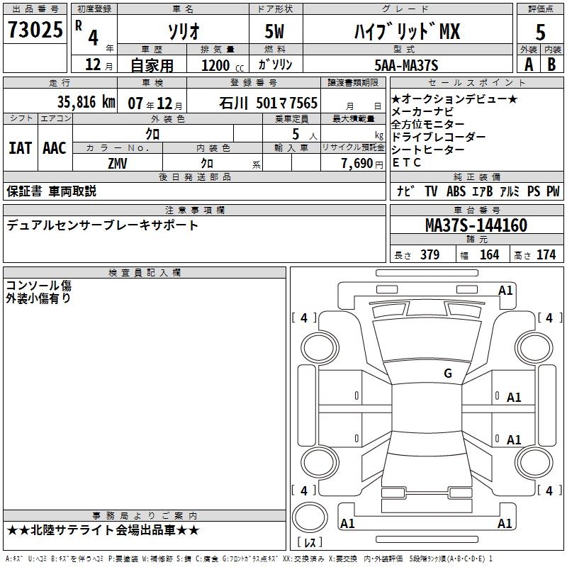 SUZUKI SOLIO HYBRID MX - лот 73025