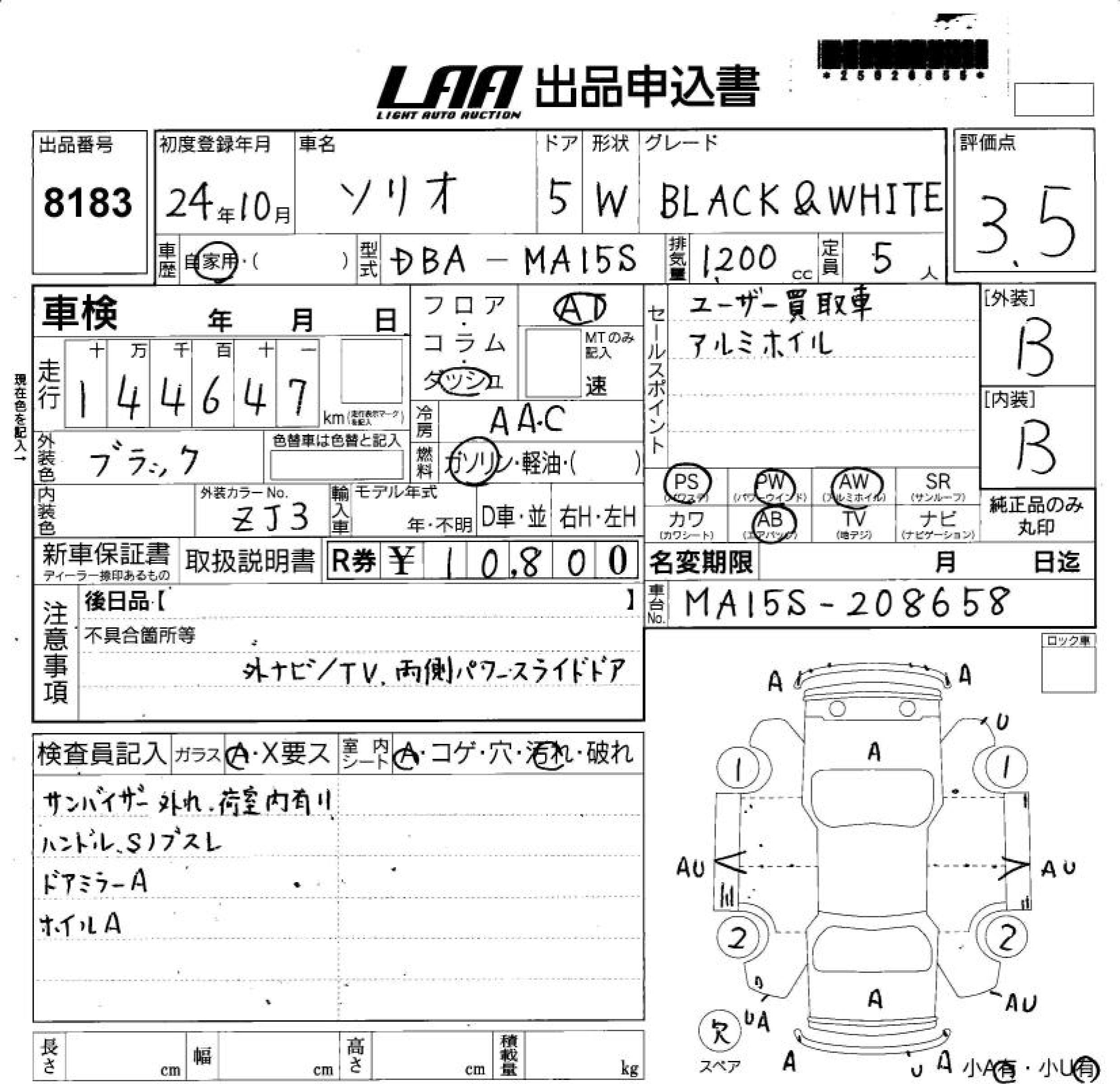 SUZUKI SOLIO BLACK & WHITE - лот 8183