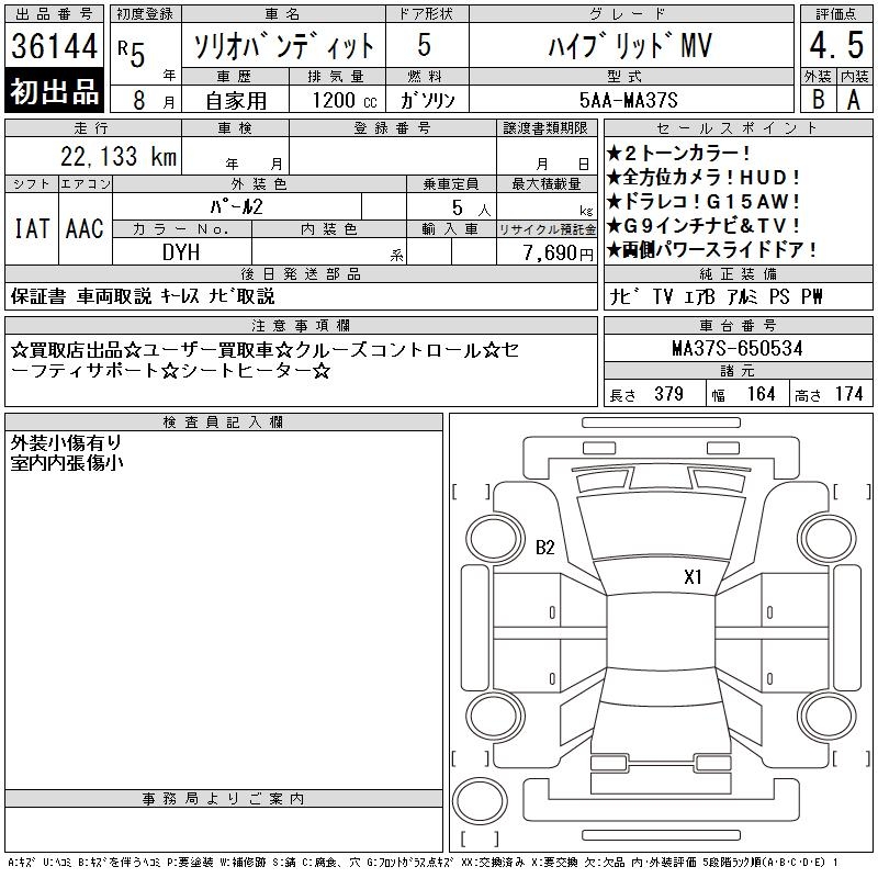 Все аукционы SUZUKI SOLIO BANDIT