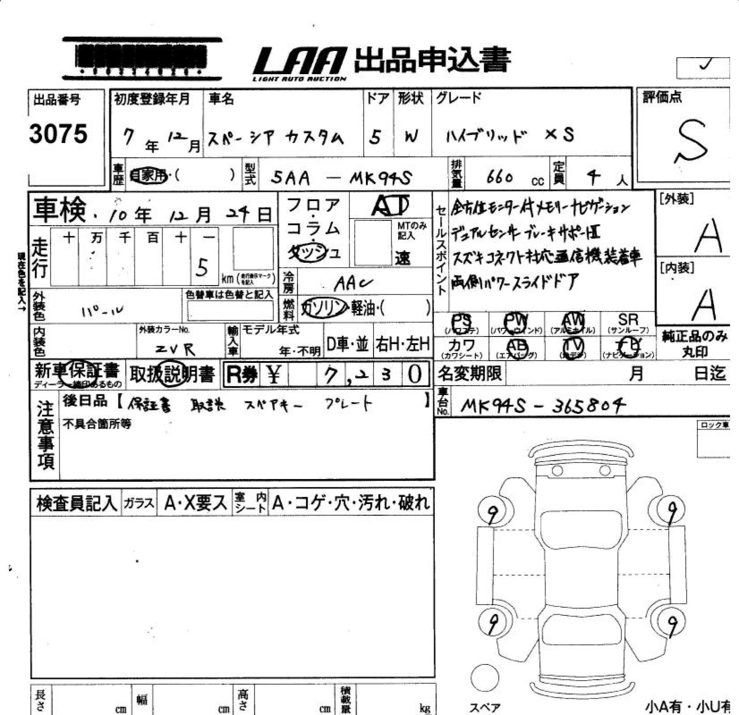 SUZUKI SPACIA CUSTOM - лот 3075