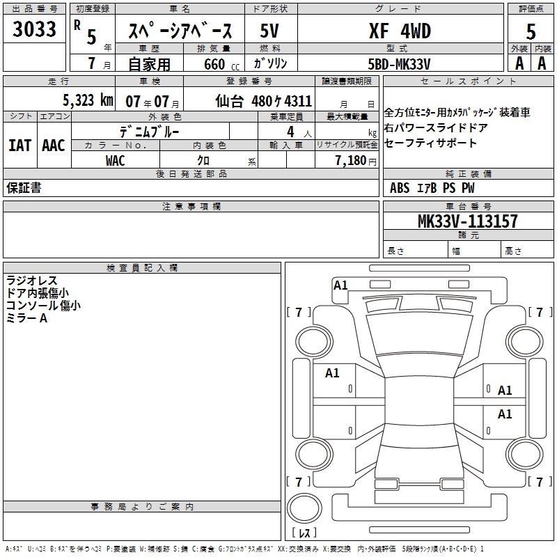 SUZUKI SPACIA BACE XF 4WD - лот 3033