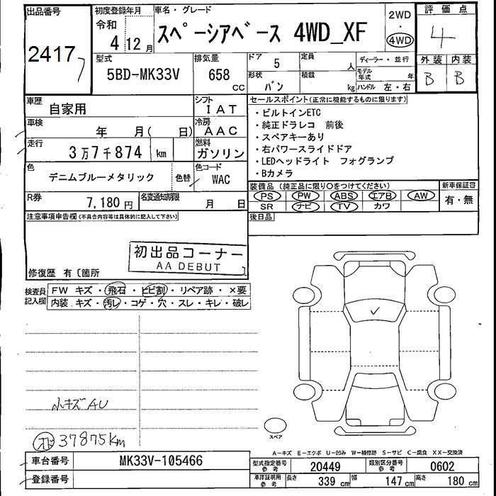 SUZUKI SPACIA BACE 4WD XF - лот 2417