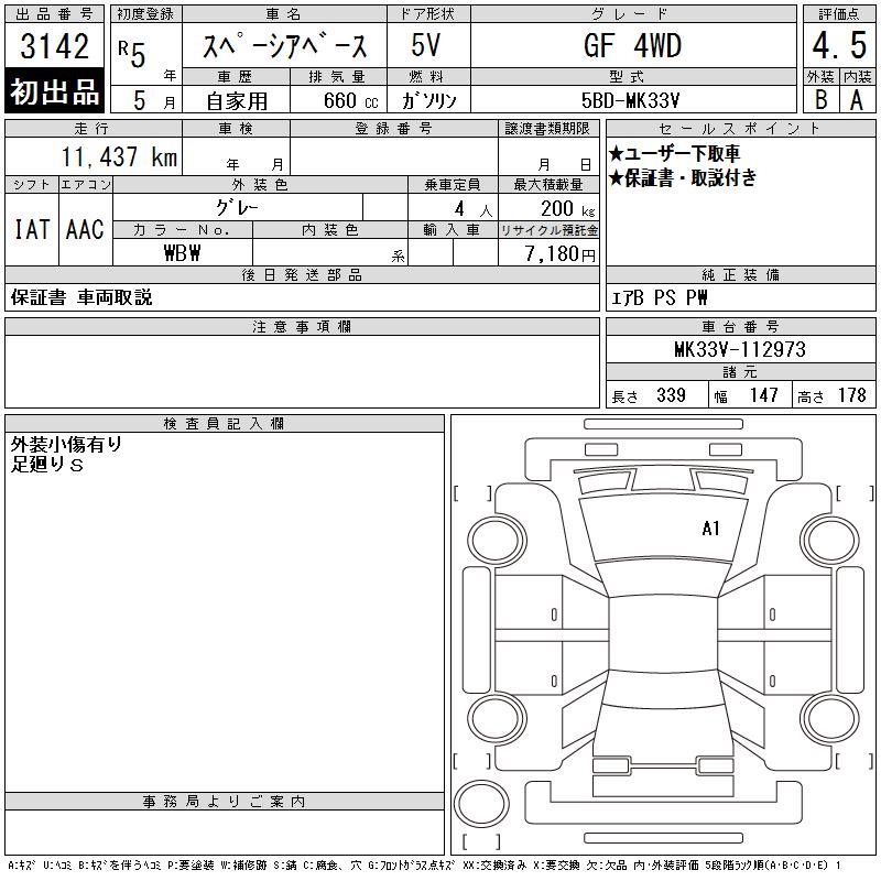 SUZUKI SPACIA BACE GF 4WD - лот 3142