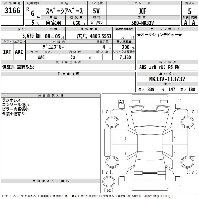 SUZUKI SPACIA BACE XF - лот 3166