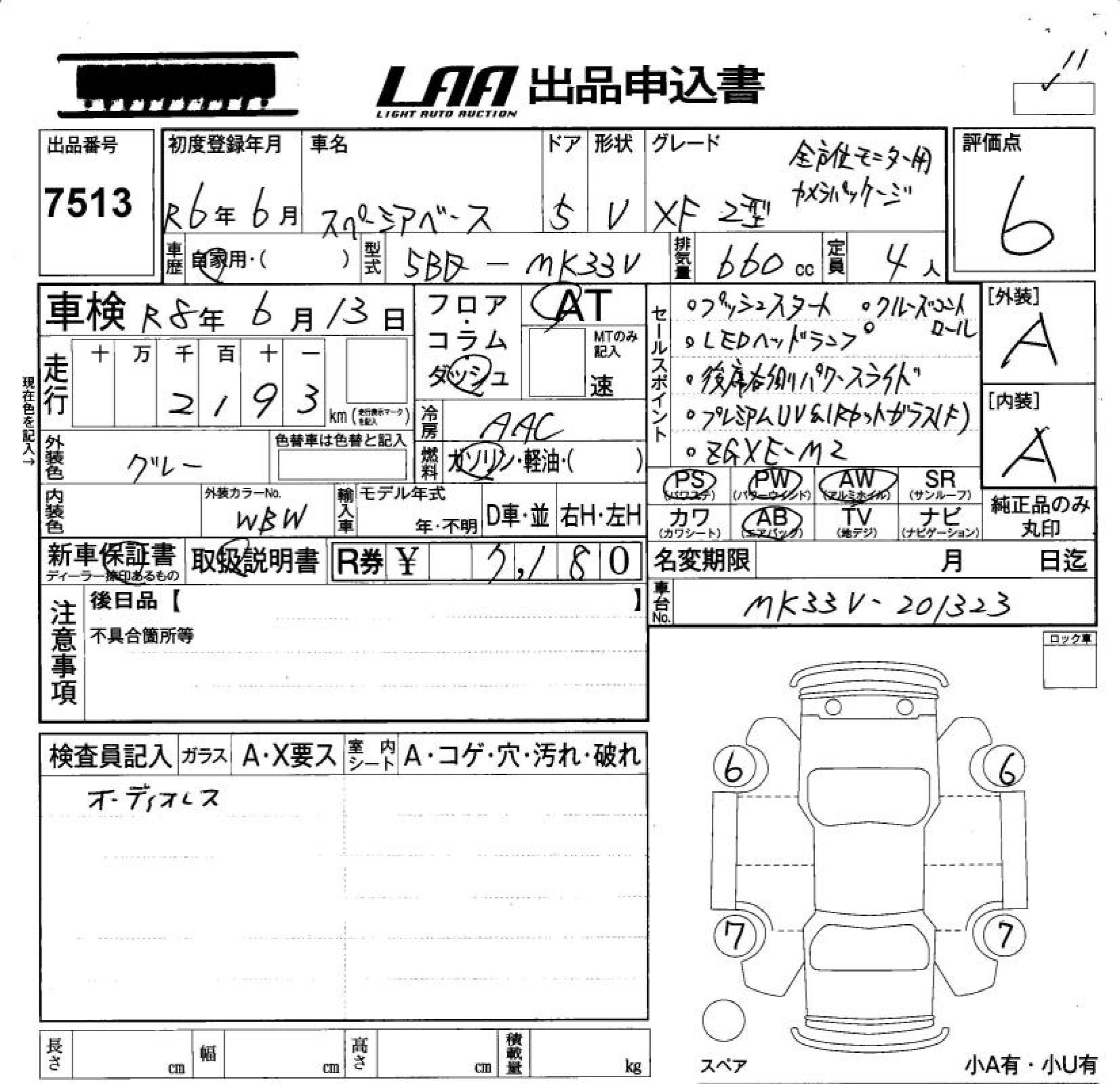 SUZUKI SPACIA BACE XF 2 TYPE ALL PERSON . MONITOR .KA - лот 7513