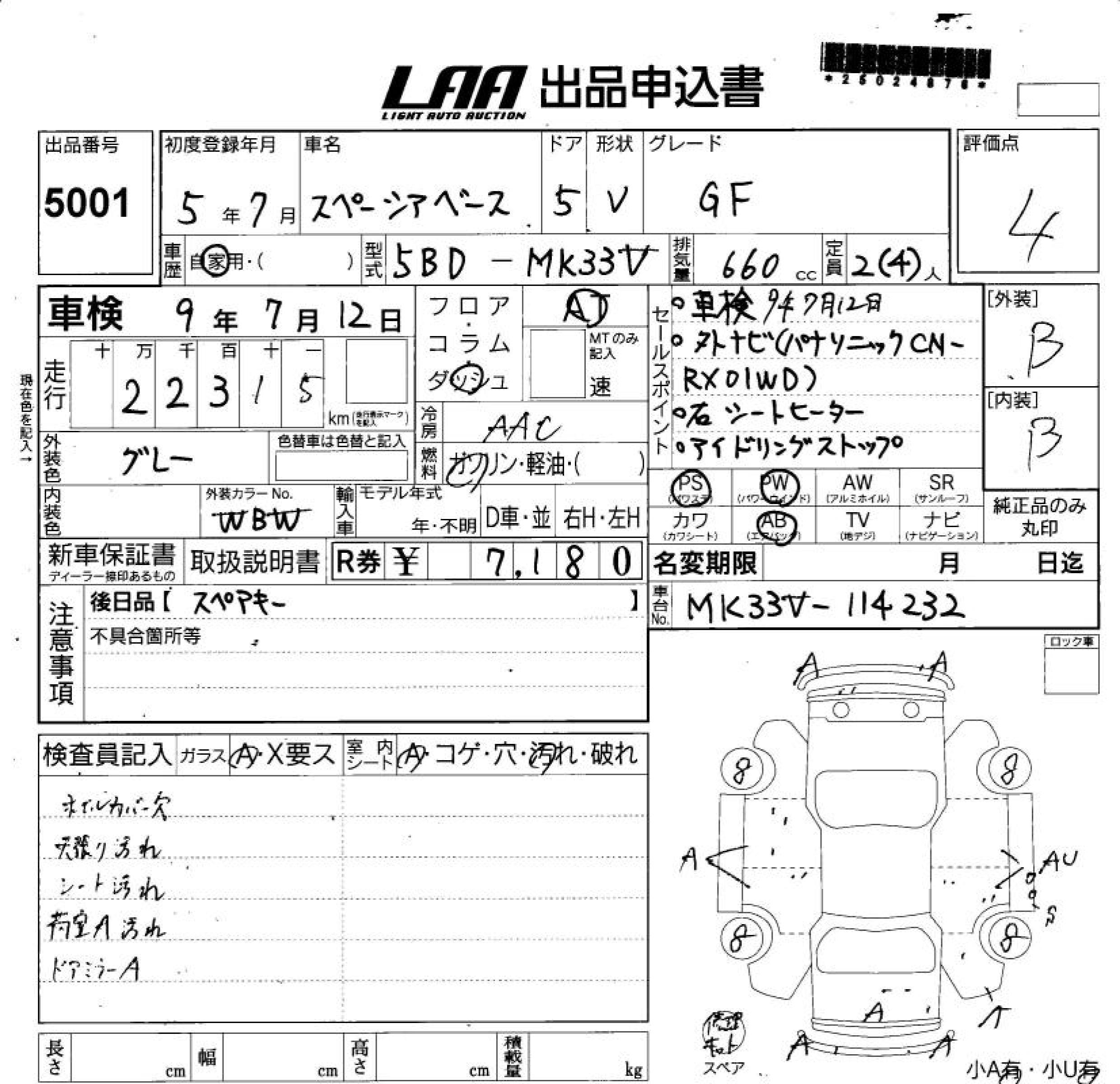 SUZUKI SPACIA BACE G-F - лот 5001